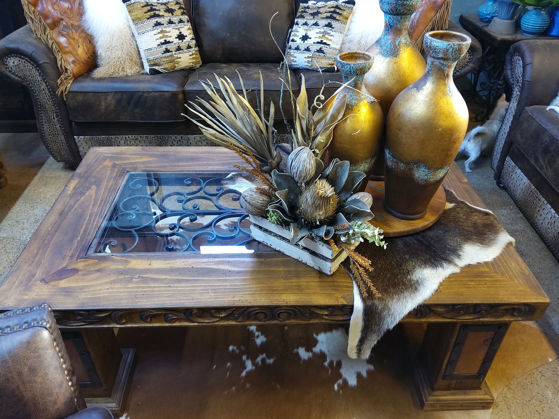 Enjoy the finest grade of pine, teak, and alder wood for your living room furniture. The Western Gallery has an extensive selection of pieces made of carved wood, upholstered with cowhide, leather, and fabric. You and your family will truly adore the look of Texas in your living room.